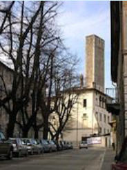 * Piazza Campello. Au bout de la rue, loggia du XVIe s. Dans la seconde moitié du XIIIe s., les Franciscains construisent sur le côté est l’ex-église