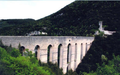 construit sur l’abîme que constitue le lit du Tessino entre la colline de la forteresse et le Monteluco : 9 piliers reliés par 10