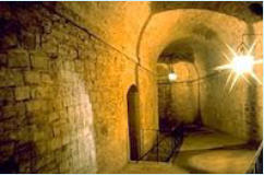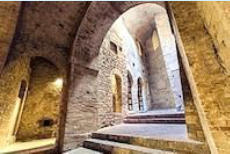 d’ogives ; sur les parois, des blasons de pierre, dont celui de Braccio da Montone, avec un mouton ; un coffre-fort du XVe siècle