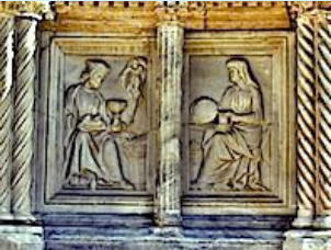 3 épisodes de la Vie du Christ, La Prudence et la Justice au-dessus de 6 Sages de l’Antiquité (Cf plus