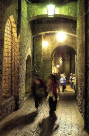 Priori (qui descend vers la Porta Trasimeno, perpendiculaire à Via della Gabbia, ainsi nommée parce qu’il y avait une cage en fer dans
