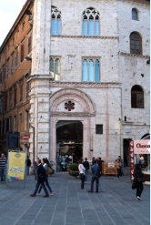 intégrée en 1255. On revient sur le Corso Vannucci, et après avoir observé le jeu des fenêtres trilobées et deux fenêtres bigéminées (quadrifore), on arrive à