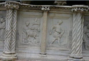aqueduc qui part du Monte Pacciano, à 4 km de la ville et vient alimenter la grande Fontana Maggiore de la Place centrale où se retrouvent le pouvoir