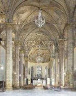 la voûte est supportée par 8 grands arcs transversaux. Les retombées et les murs latéraux sont ornés de fresques de la fin du XIIIe siècle, représentant des