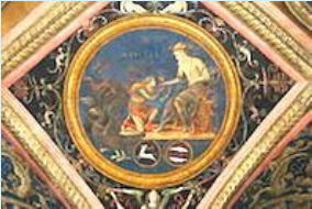 Perugino peint sur la voûte une série de divinités et de planètes sur des chars tirés par divers animaux