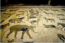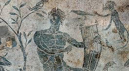 une mosaïque romaine (n° 10) du IIe siècle apr.J.C. représentant Orphée et les bêtes sauvages, qui ornait probablement des thermes (Ci-dessous au