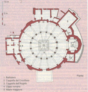 siècle, puis en 1948. On peut la comparer à Santo Stefano Rotondo de Rome sur le Monte Celio, et ce sont de rares
