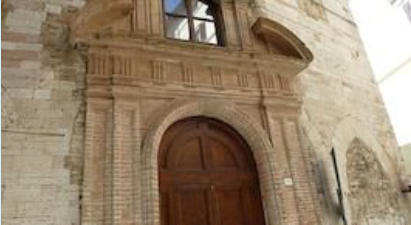 local est encore décoré de nombreuses fresques. C’est un bel exemple du premier baroque de Perugia, avec son portail de marbre du XVIe siècle, le