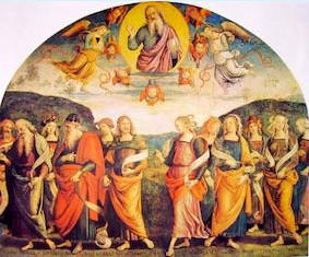 mit une Transfiguration, une Adoration des Bergers, les sibylles, les prophètes, Léonidas, Socrate d'autres héros et philosophes païens, un