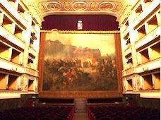 a de belles décorations, et un rideau de scène de Cesare Fracassini (1866) représentant Bélisaire qui