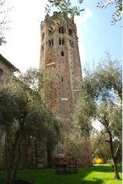 dessus à droite) ; la comtesse toscane Mathilde l’enrichit et fait construire en 1103 le clocher dodécagonal, avec ses deux