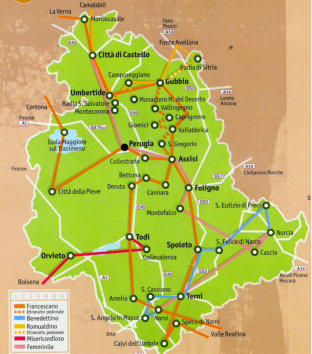 parcourir toute l’Ombrie, de La Verna (au sud de la Toscane) et Montecasale au nord à Narni au sud (Voir notre dossier su Assise, et