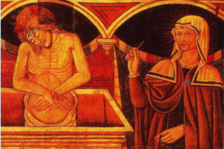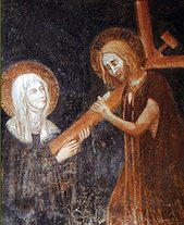 fresque du XIVe siècle ci-contre où le Christ plonge sa croix dans le cœur de sainte Claire.