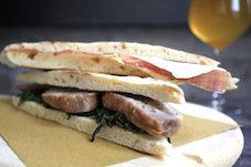 d’herbes aromatiques, puis coupé en tranches, et mis dans un petit pain (panino), souvent vendu par des marchands