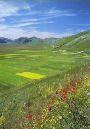 Parmi les légumes, on trouve les lentilles, comme à Castelluccio qui produit les plus appréciées d’Italie à 1400 mètres d’altitude, lentilles vertes,