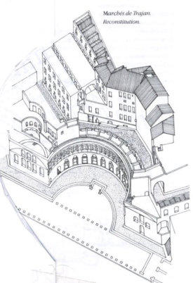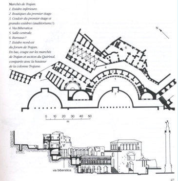 À g., on entre dans les Marchés de Trajan (début IIe s. apr. J.C.) où est en