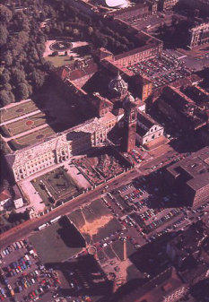 À g., Palais Royal (façade principale) : à dr. l’ensemble, avec la cathédrale, la