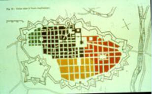 Voir le plan de la ville : un « castrum » romain presque carré entouré de murailles, traversé par un