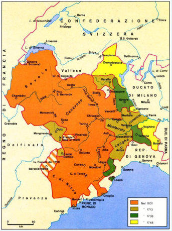 Les domaines des Savoie se démembrent à partir de l’héritier d’Adélaïde, son fils Umberto II (mort en 1103), à