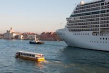Mais pire que la vinasse l'autre danger qui menace Venise plus sûrement que l'Aqua Alta ce sont ces navires de croisière hauts comme