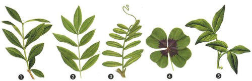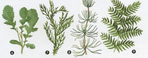 4) trifogliata = trifoliolée ; 5) biternata ; 6) lirata ;