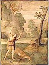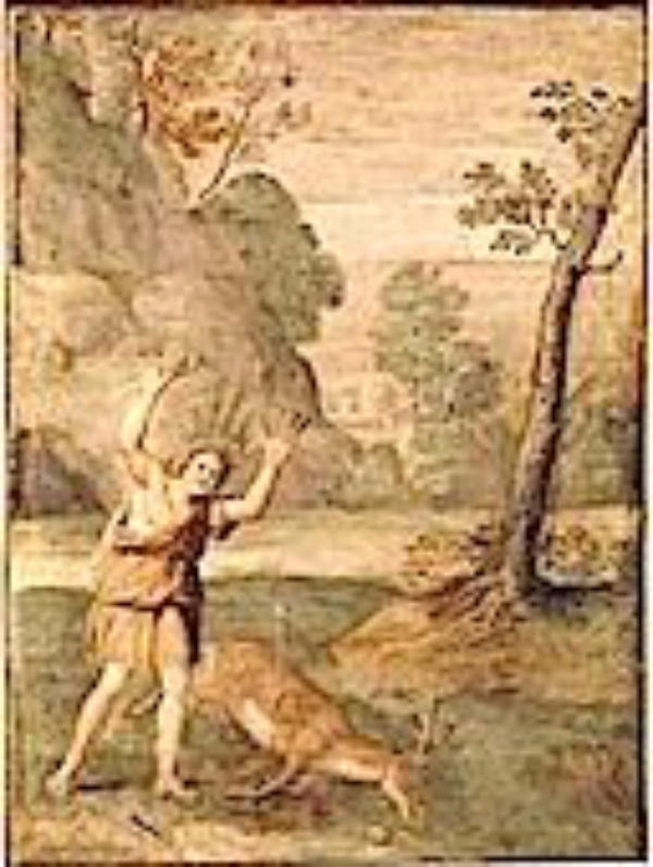 jalouse d’une nymphe, s’enfuit et s’émascula, faisant naître de son sang un pin, consacré ensuite à Cybèle, et un phallus enveloppé de