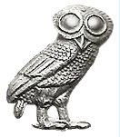 La civetta di Atena = la chouette de Minerve, animal qui y voit dans l’obscurité, symbole de la